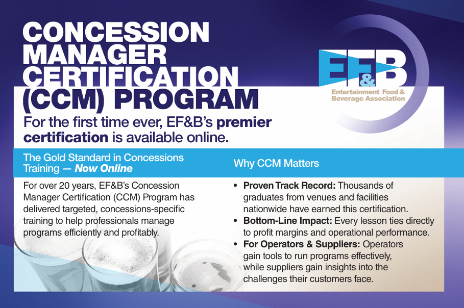 CineTRAIN, a brand of HighRock and a leader in online education for the entertainment and hospitality industries, and the Entertainment Food & Beverage Association (EF&B) today announced the launch of the Certified Concession Manager (CCM) program online — The Fundamentals of Recreational Foodservice Management. This marks the first time in the program’s history that this flagship EF&B certification is available in an online format, opening access to food and beverage professionals across the globe.