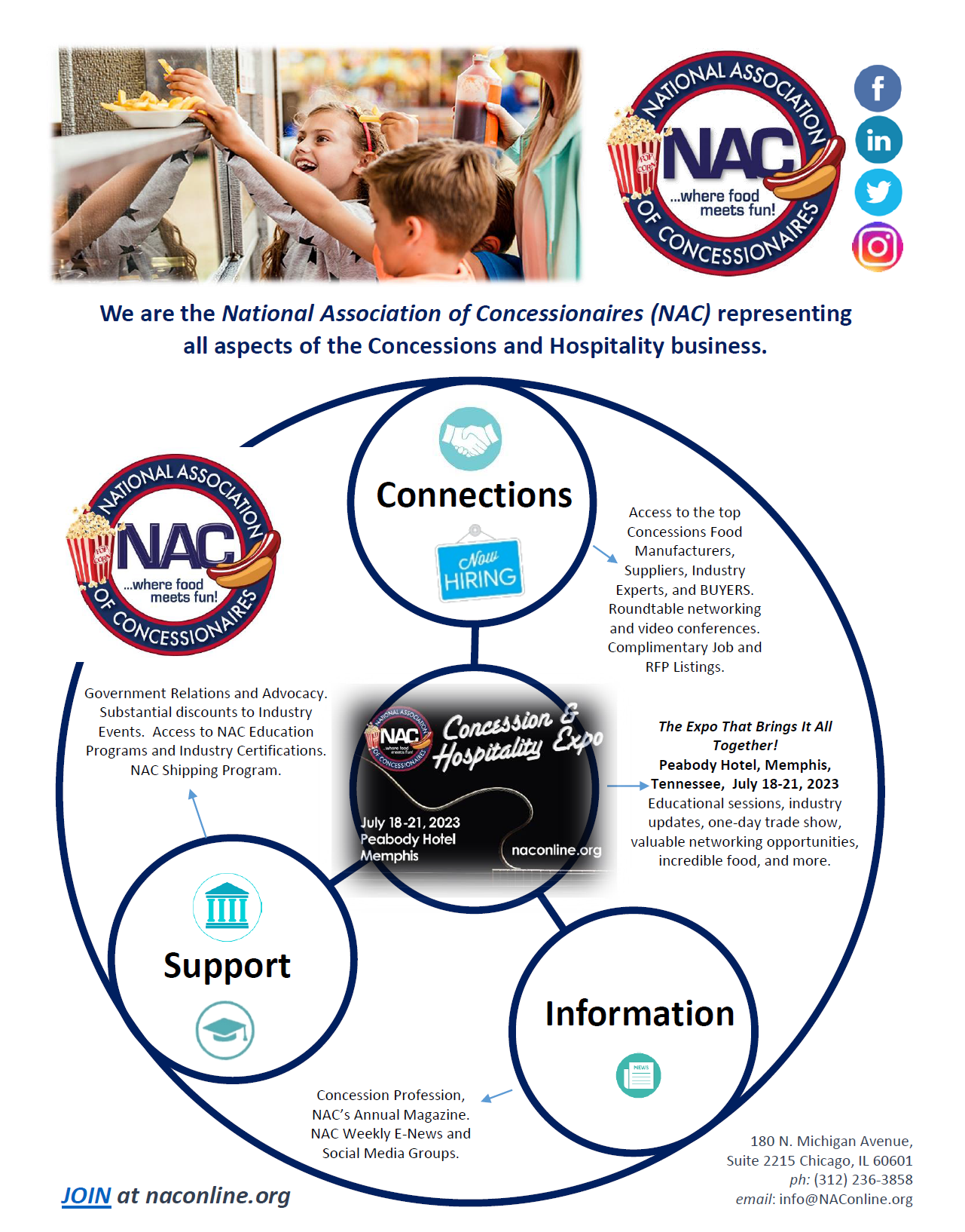 EF&B/NAC membership is a value-added experience. Join or renew today and take advantage of all the exciting benefits NAC has to offer:-Discounted access to registrants and vendors alike at the 2025 EF&B/NAC Concession & Hospitality EXPO. Sept. 16-18, 2025, The Westin San Antonio North.